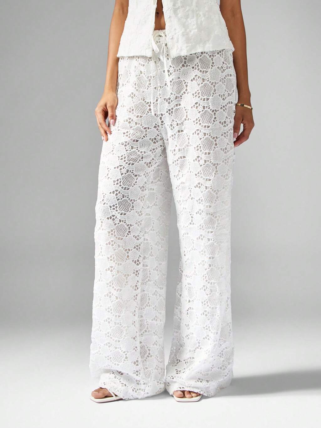 MISSGUIDED Spodnie palazzo z koronką i szerokimi nogawkami i ściągaczem w pasie