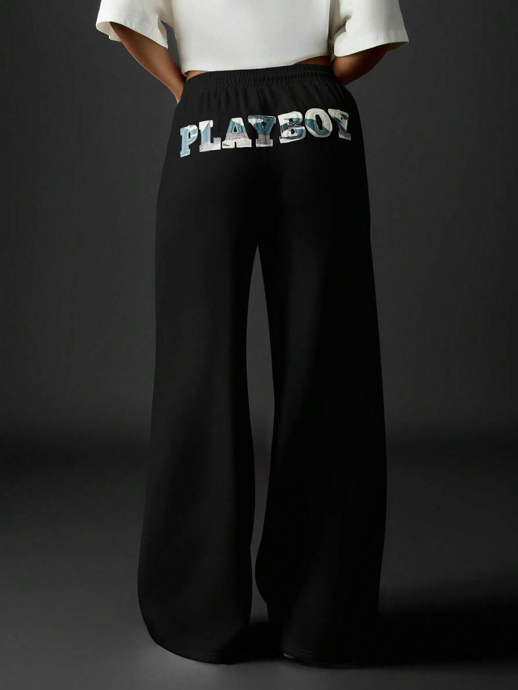 Missguided x Playboy Spodnie dresowe z szerokimi nogawkami i logo