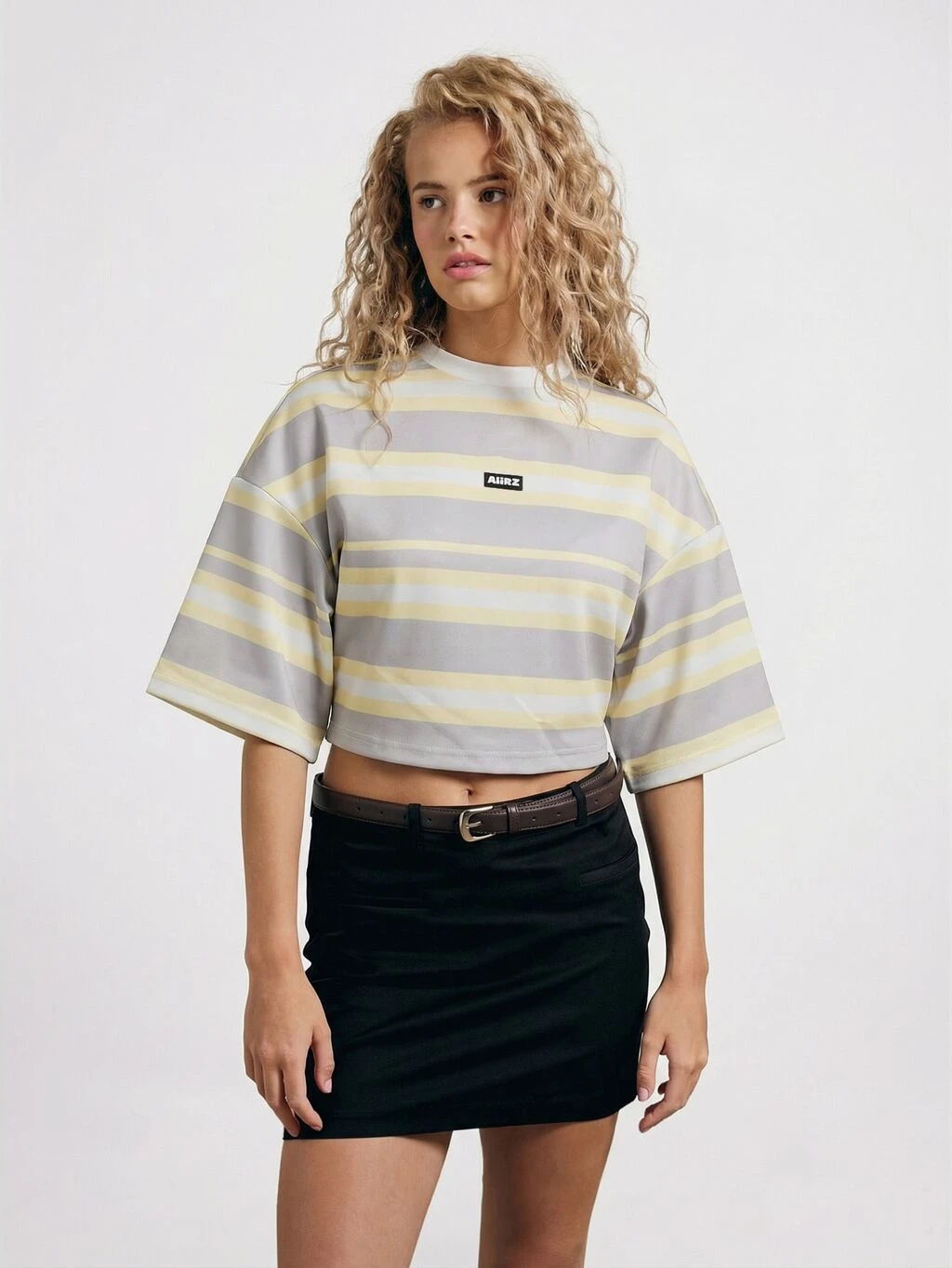 AiiRZ Koszulka Airz Premium Crop Top Oversize z krótkim rękawem, letnia, uliczna, pudełkowa, szeroka, w paski