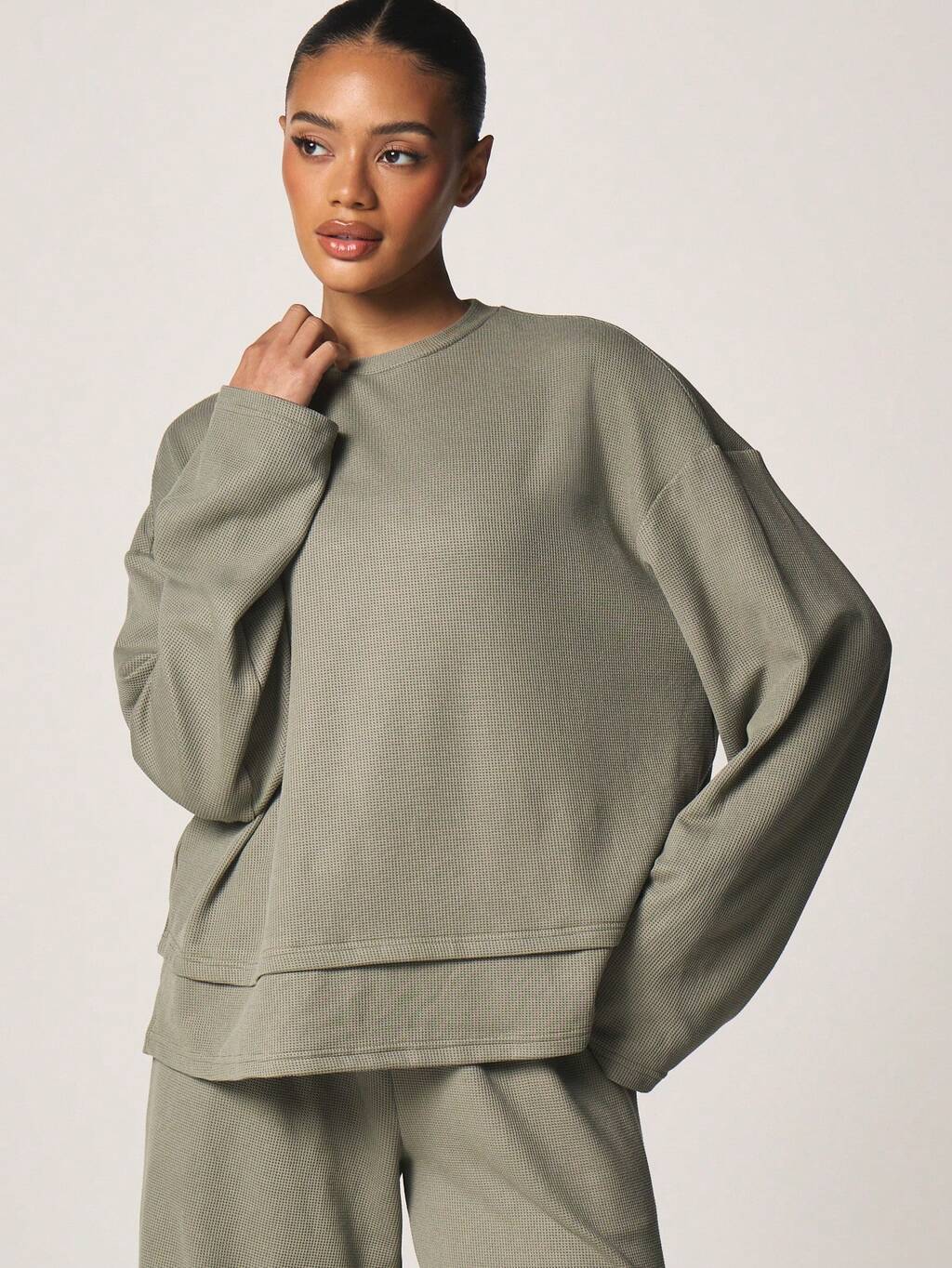 MISSGUIDED Bluzka z długim rękawem i okrągłym dekoltem w kształcie wafla