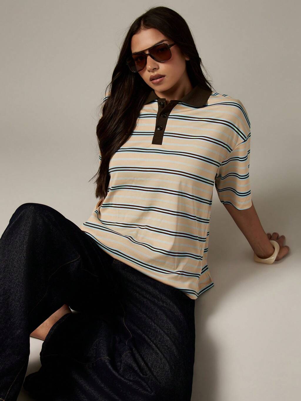 MISSGUIDED Koszulka polo w paski do rugby z kołnierzykiem i krótkimi rękawami