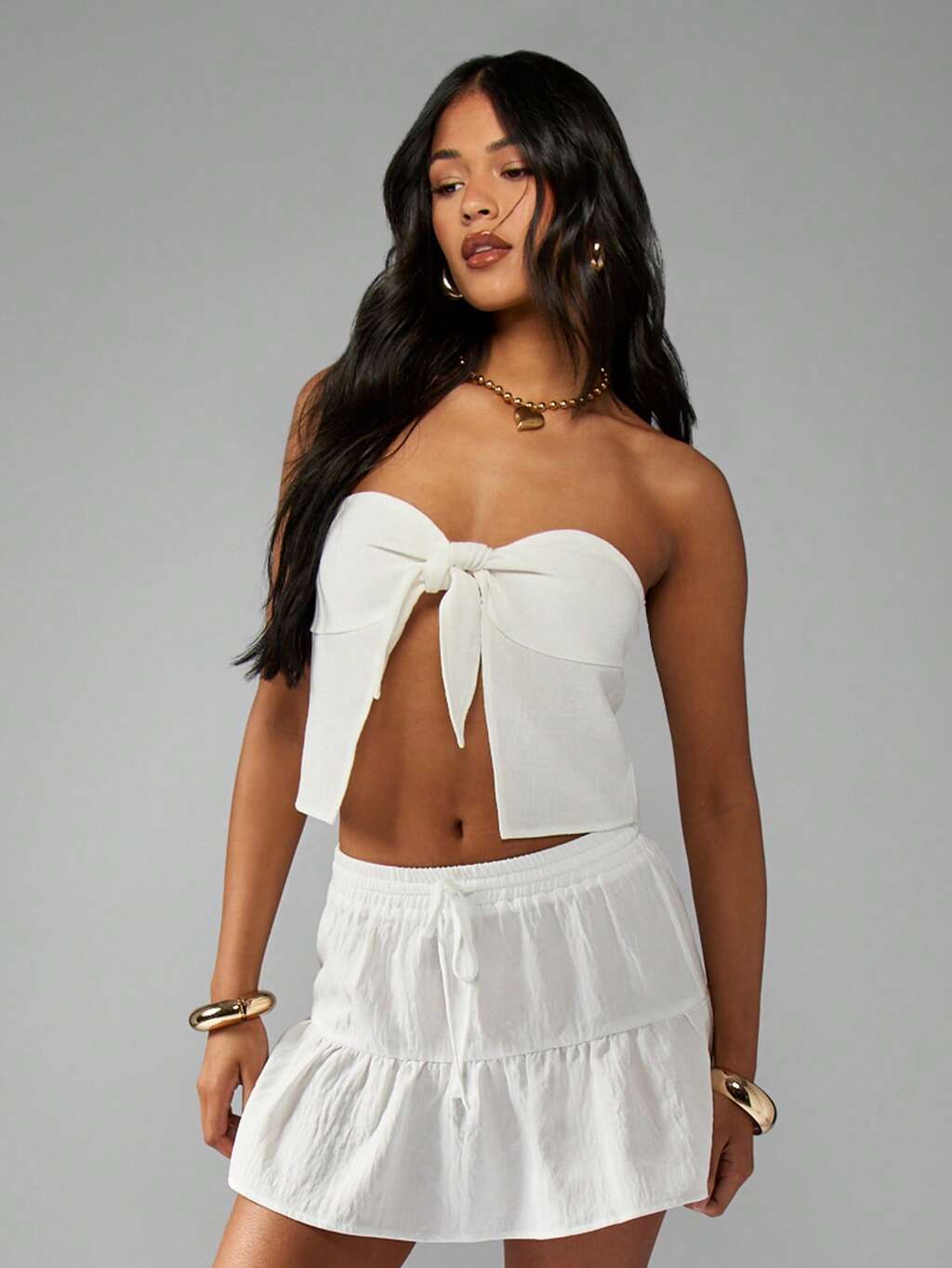 MISSGUIDED Lniany top typu bandeau z wiązaniem z przodu i bez ramiączek, z kokardą