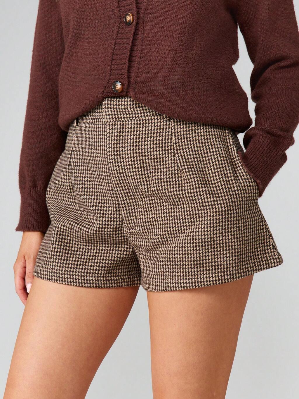MISSGUIDED Krótkie szorty z tweedu w pepitkę