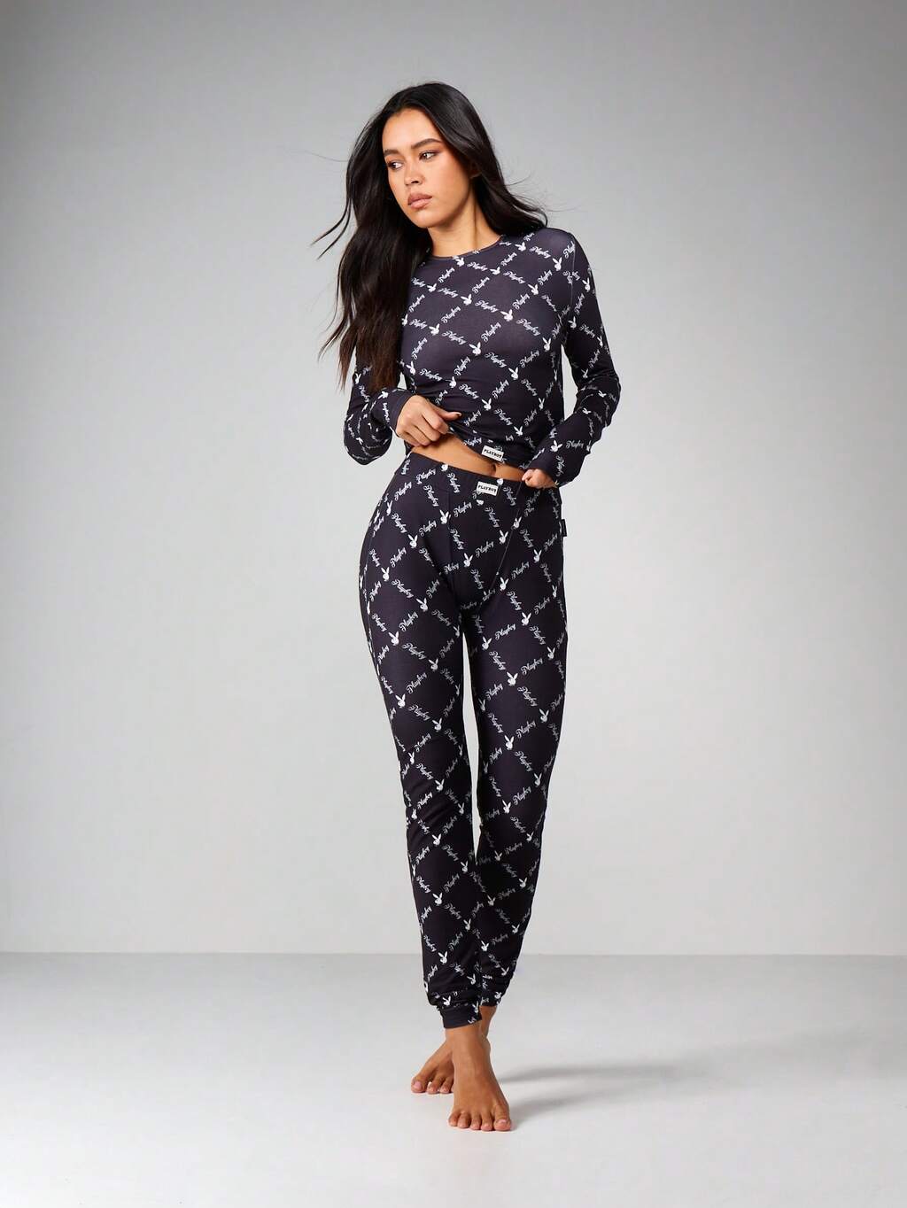 Missguided x Playboy Camisola estampada e calças largas com logotipo de coelho