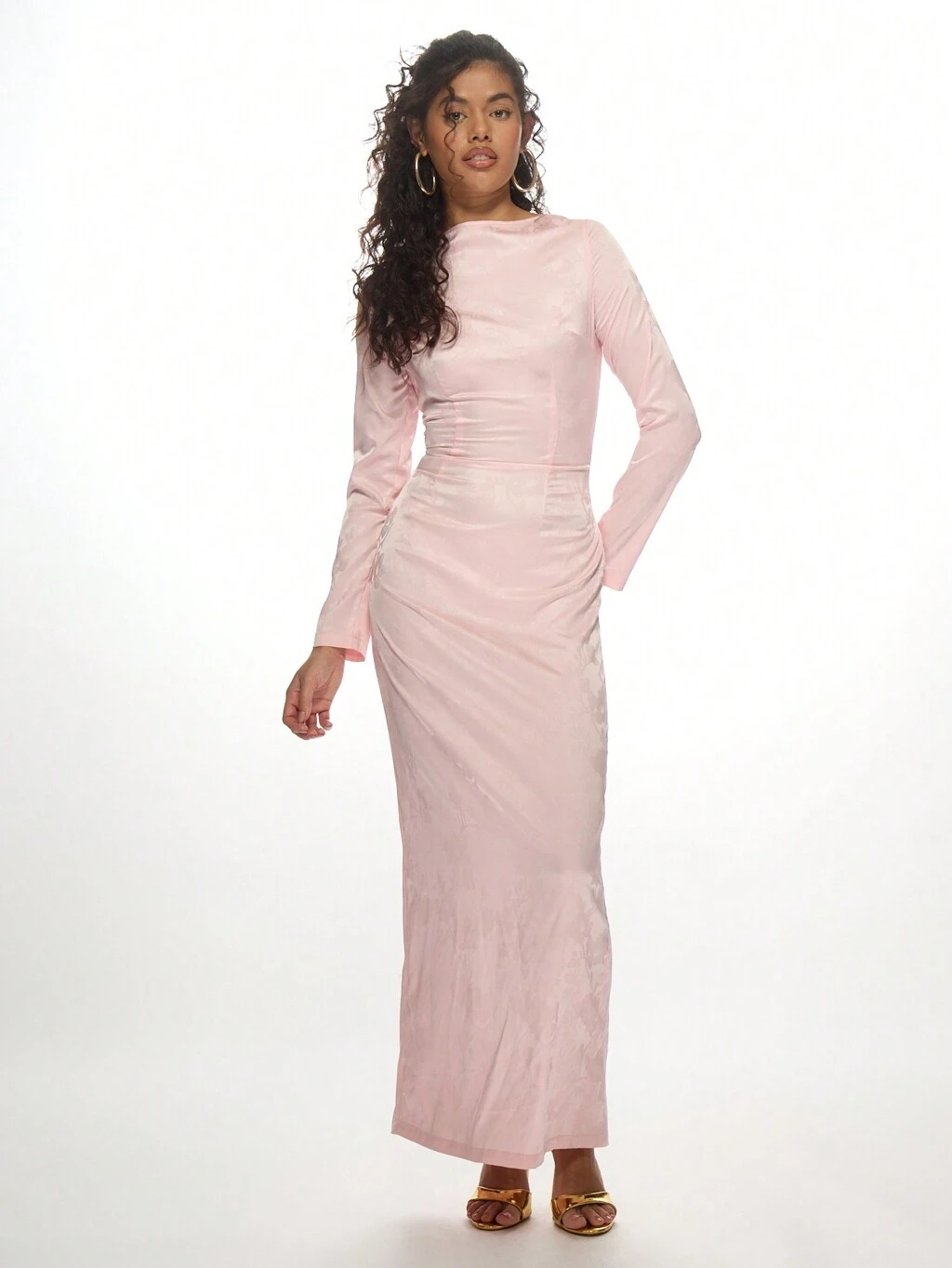 MISSGUIDED Vestido longo elegante de cetim com mangas compridas