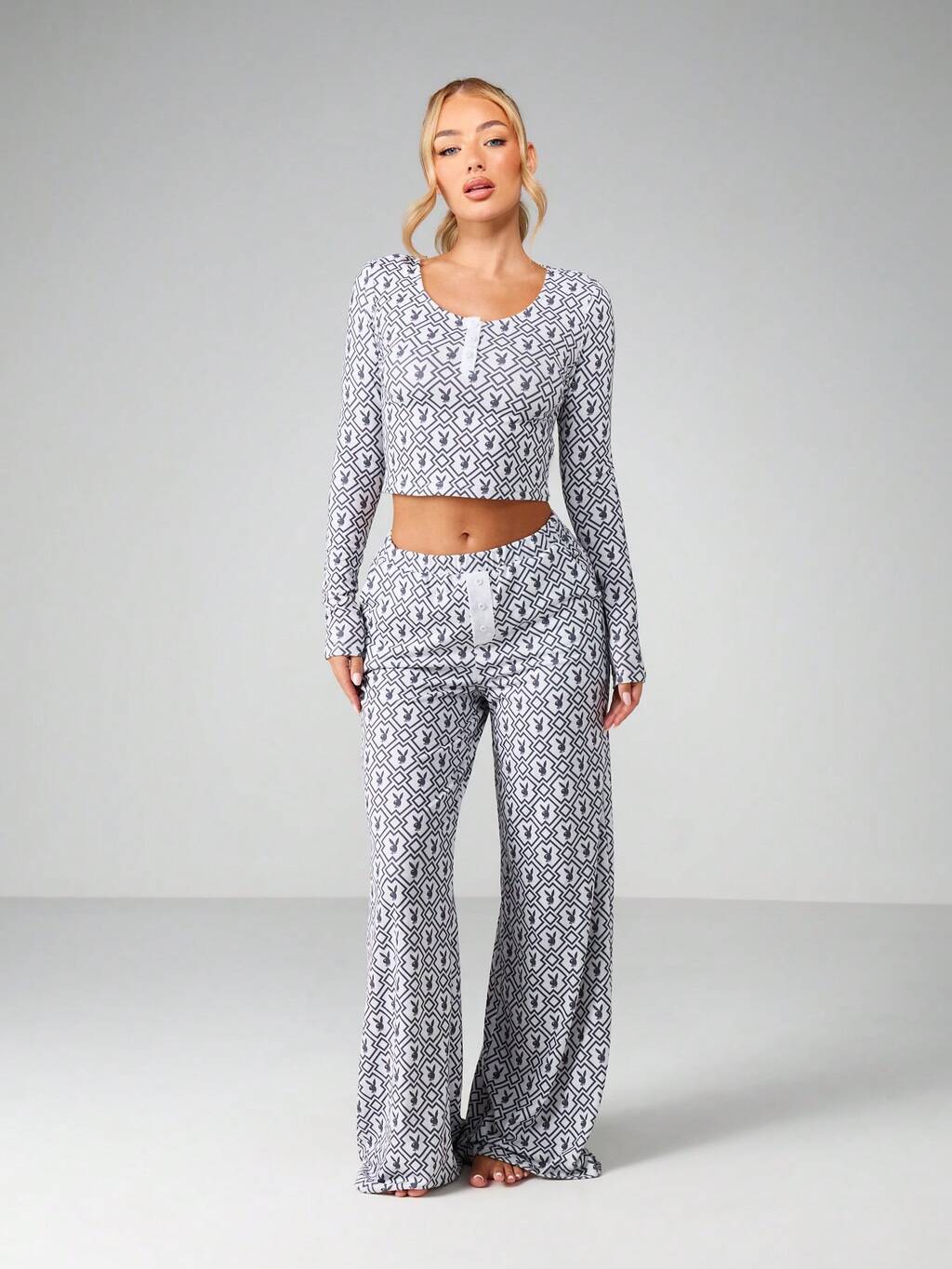 Missguided x Playboy Camisola estampada e calças largas com logotipo de coelho
