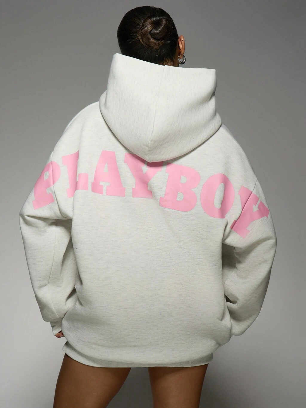 Missguided x Playboy Moletom com capuz oversized com estampa de logotipo