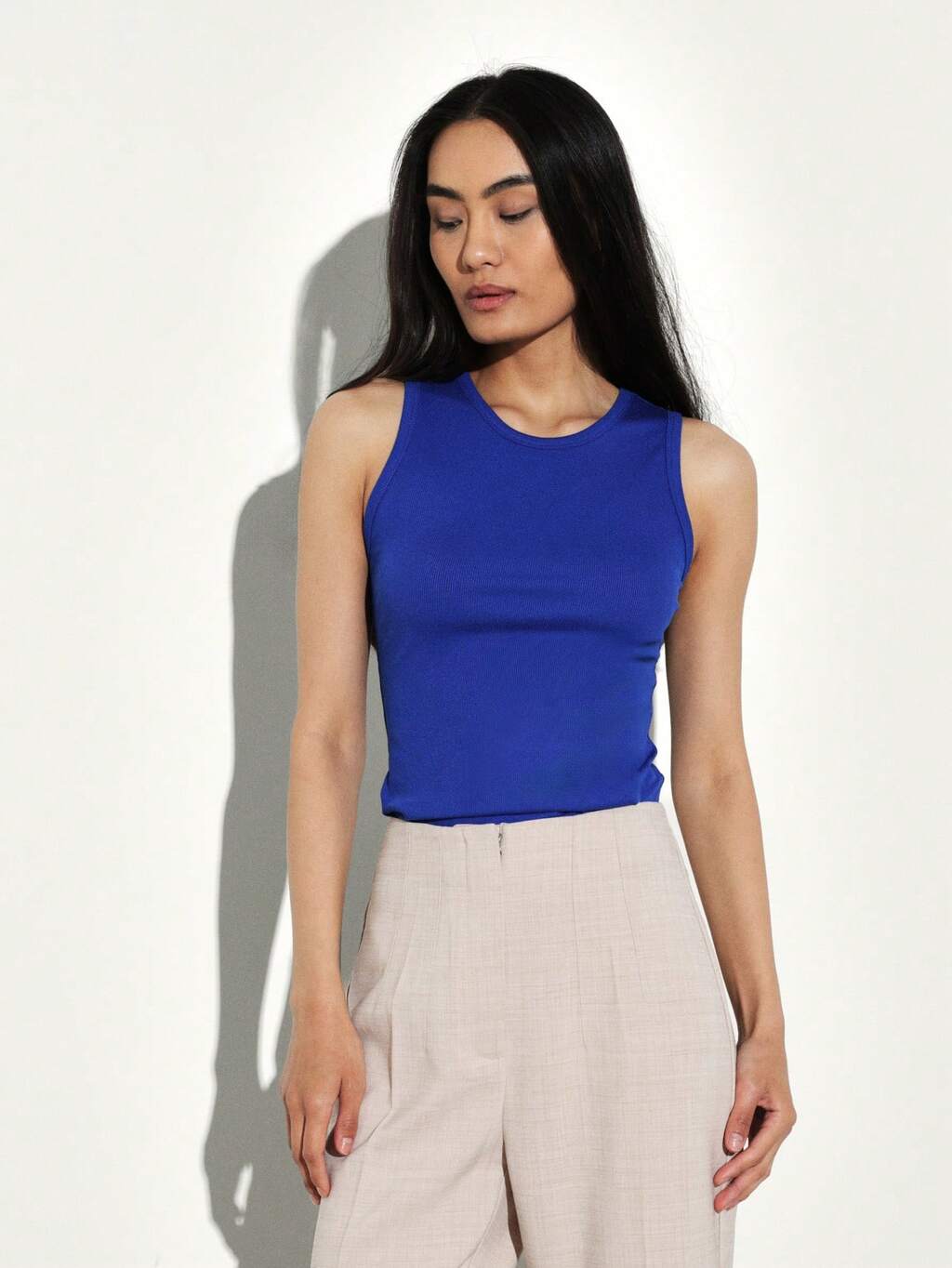 KSTM Regata Feminina Sem Mangas com Decote Redondo em Tecido Canelado Sólido para Uso Casual no Verão