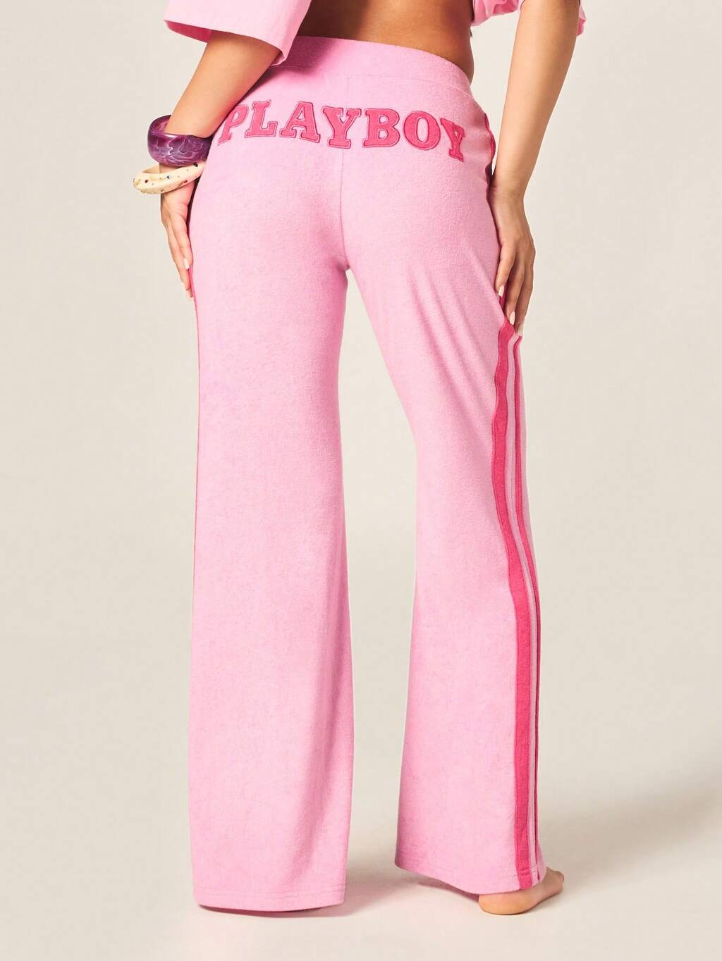 Missguided x Playboy Calças de moletom de perna larga com estampa rosa