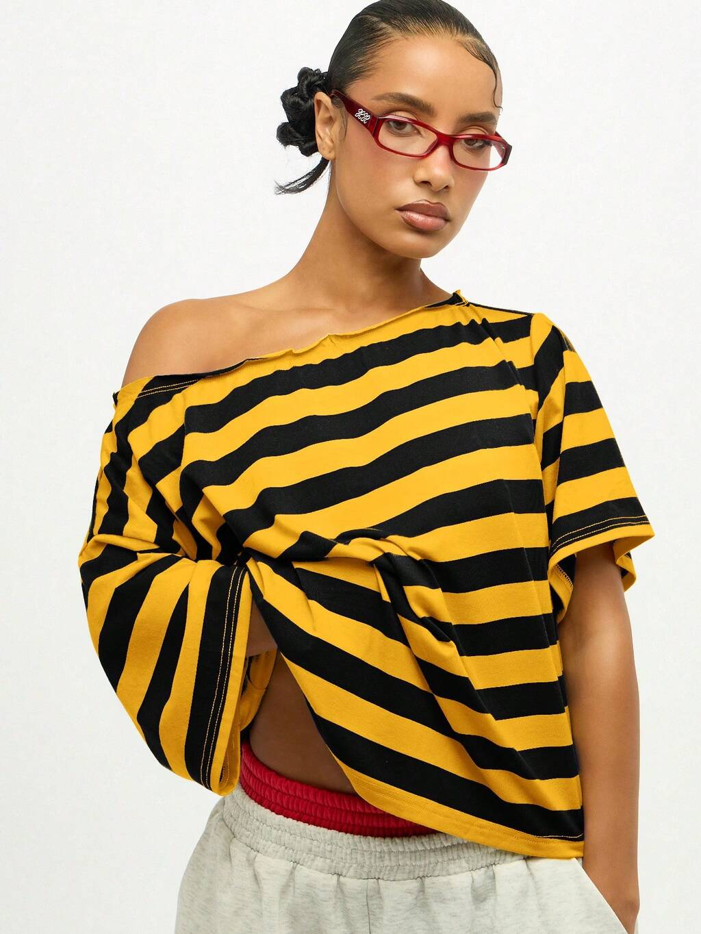 SUMWON WOMEN Shorts Pantacourt Oversized de Perna Larga com Listras Contrastantes Amarelas, Shorts de Loungewear de Verão