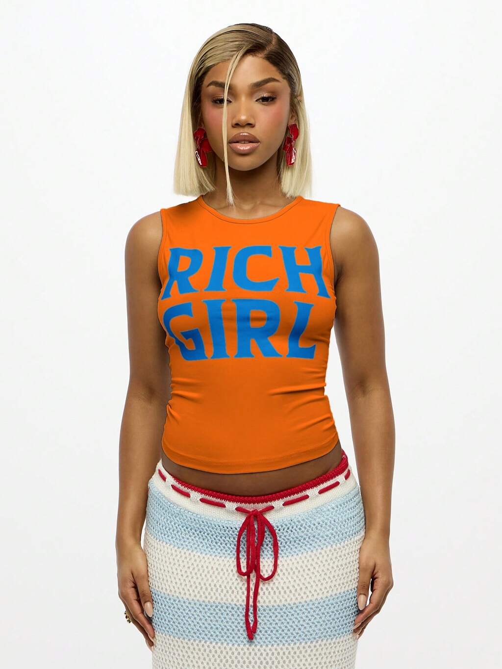 SUMWON WOMEN Regata Gráfica com Texto "Rich Girl", Casual, Verão, Festival, Estilo de Rua, Moda, Cropped Sem Mangas