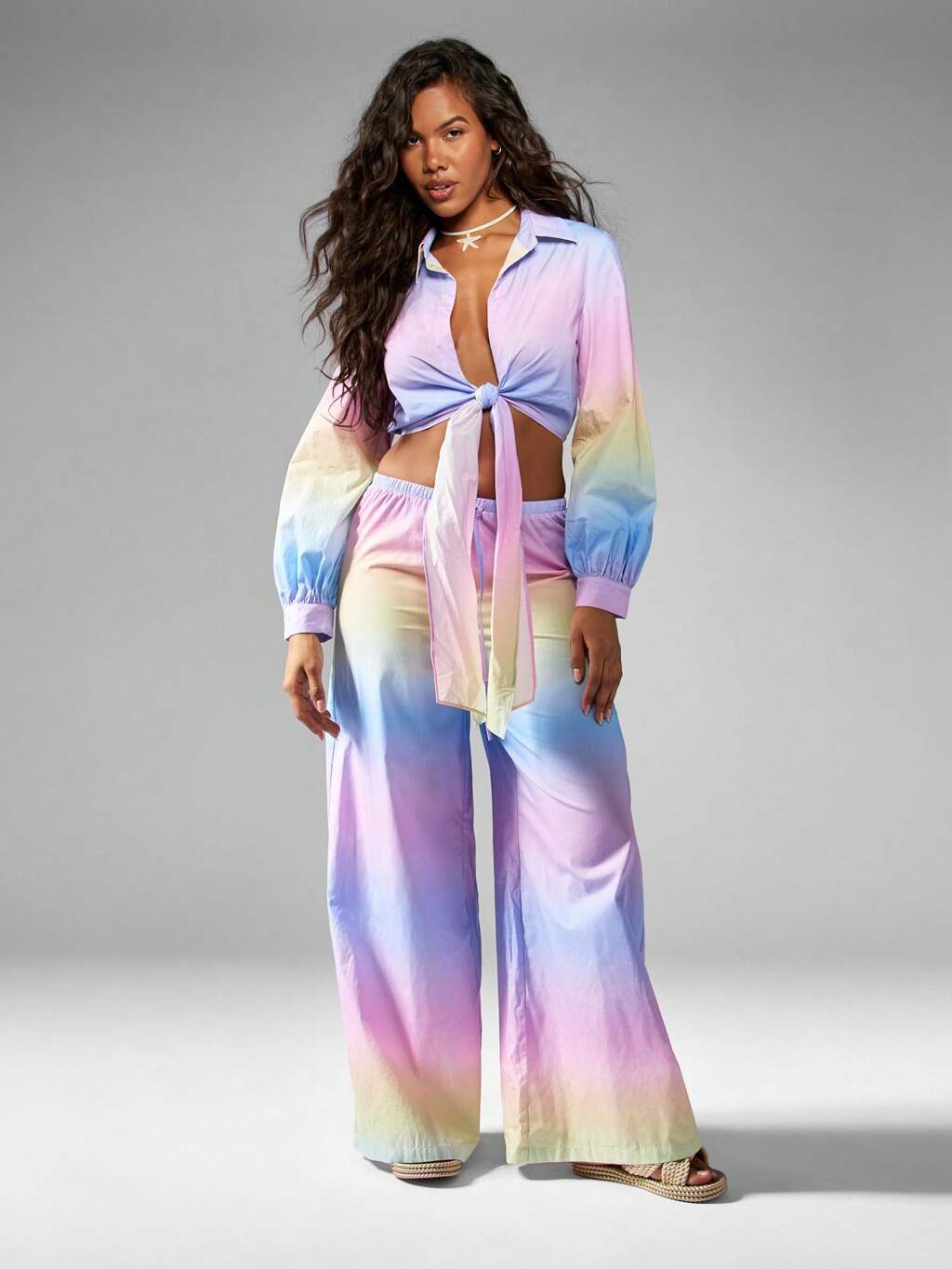 MISSGUIDED Cropped de malha canelada combinando com calças de perna larga de duas peças