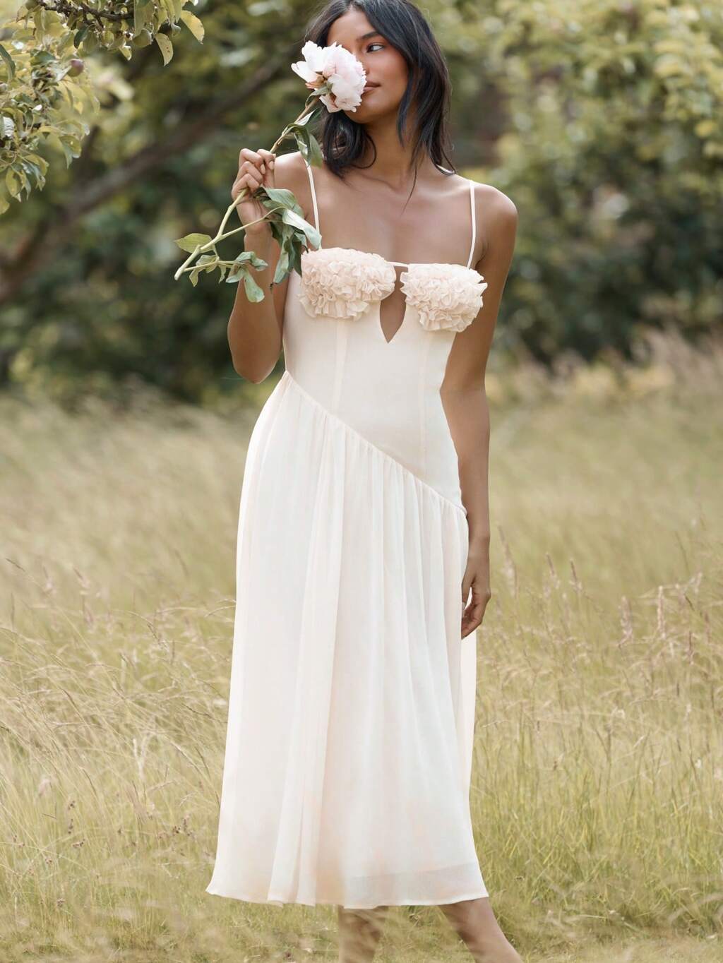 MISSGUIDED Vestido midi de chiffon com bustiê e cintura império com babados