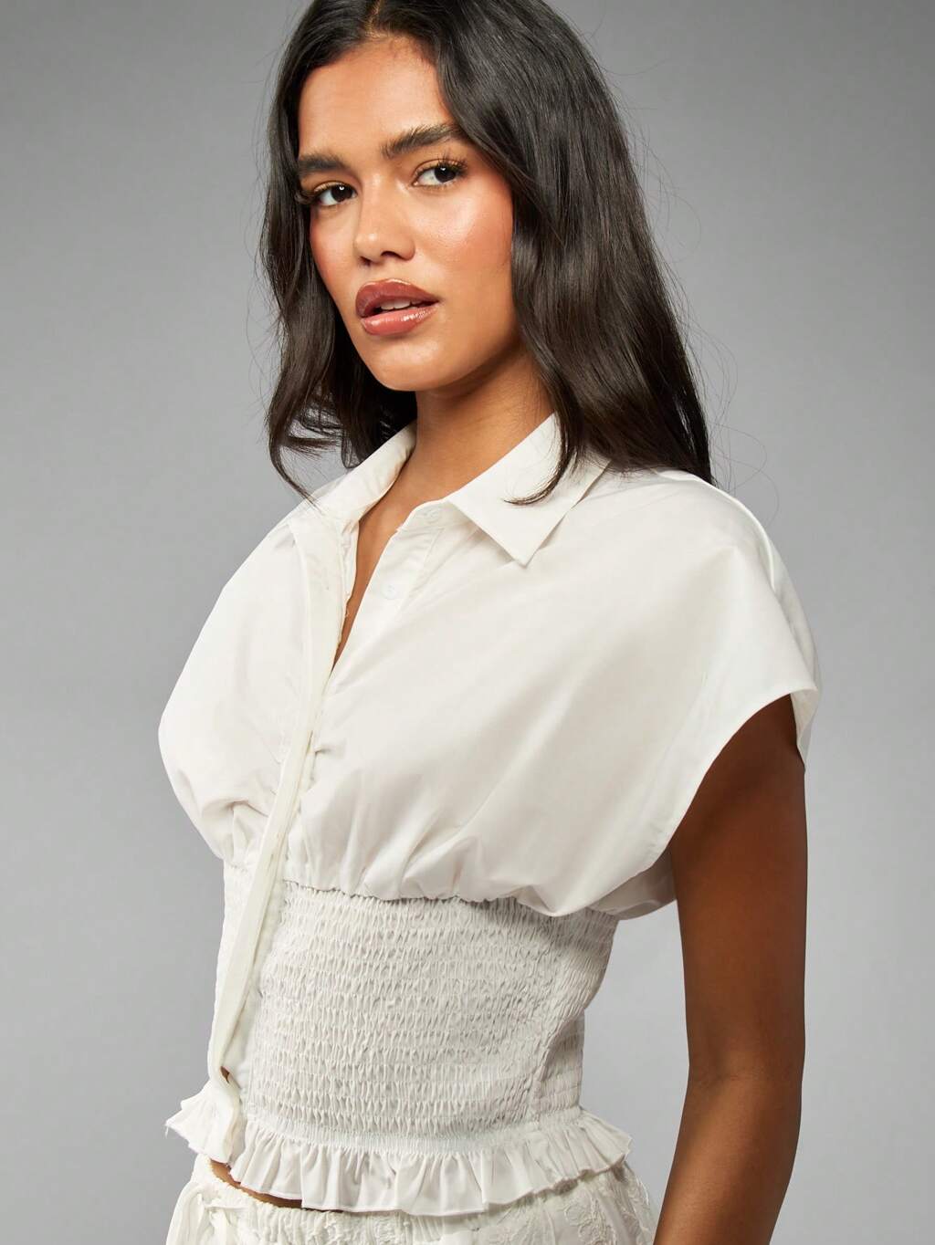 MISSGUIDED Blusa com botões frontais, cintura franzida e bainha franzida