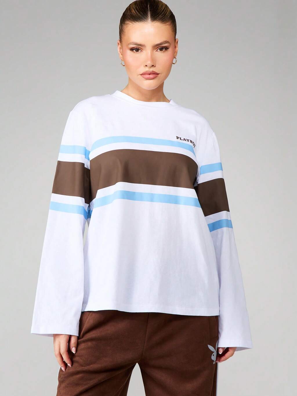 Missguided x Playboy Camiseta listrada de manga comprida com logotipo.