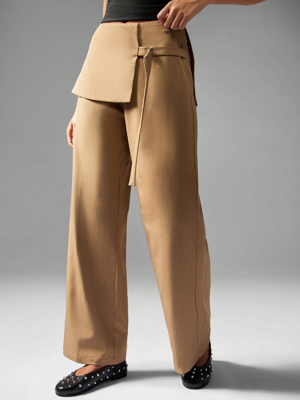 MISSGUIDED Calça de Perna Larga Plissada com Dupla Cintura e Cordões