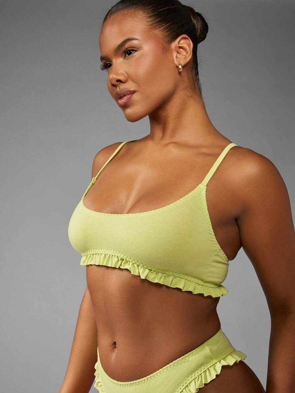 MISSGUIDED Sutiã Bralette com decote redondo e acabamento com babados