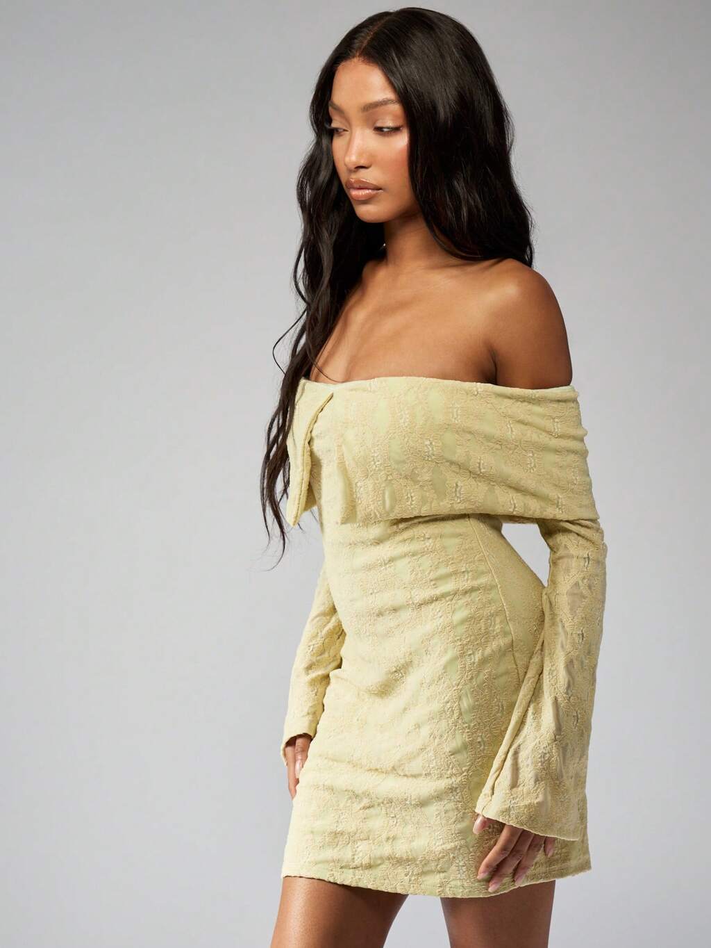 MISSGUIDED Vestido curto justo com ombros de fora e mangas sino
