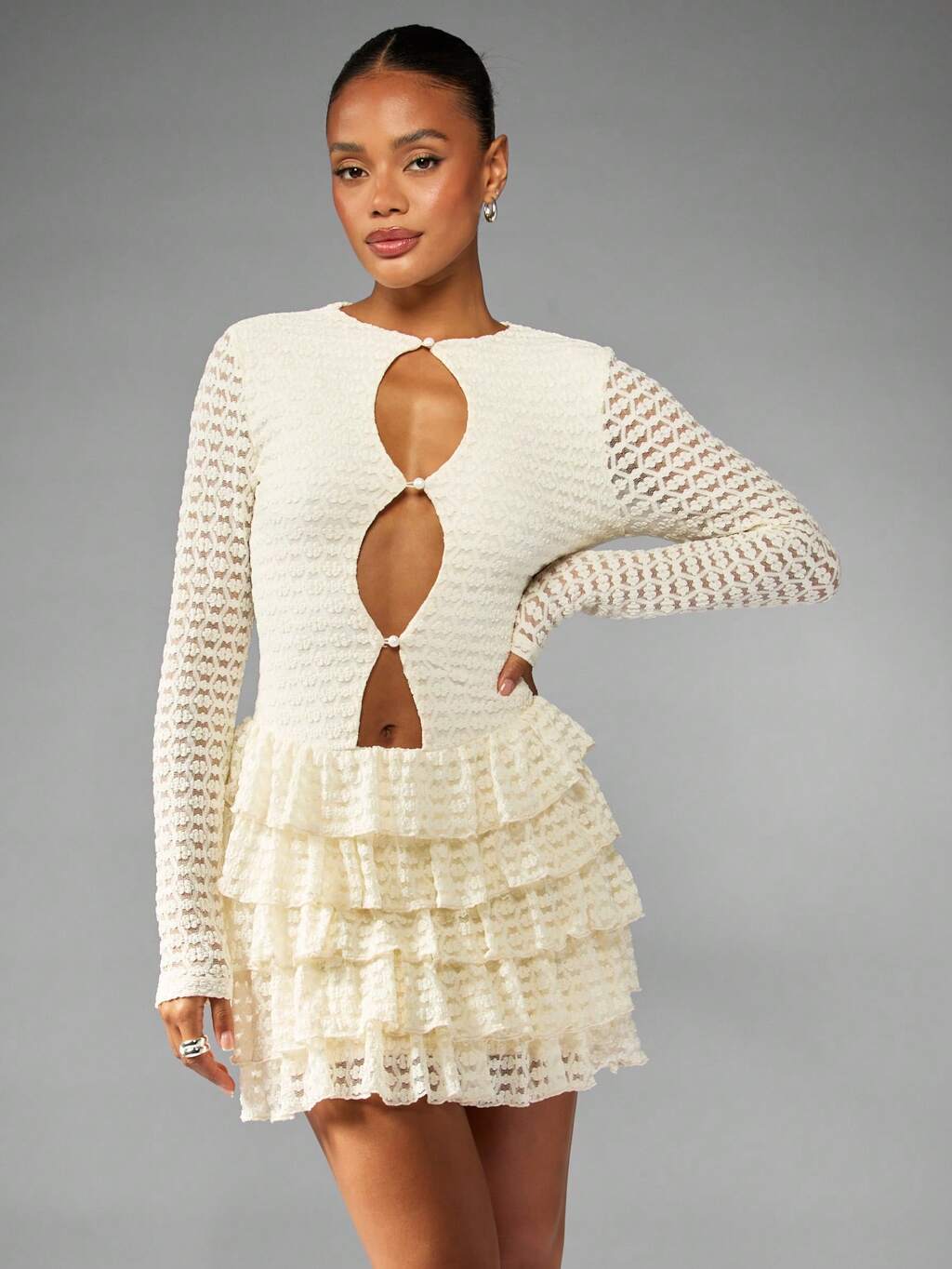 MISSGUIDED Vestido curto de renda em crochê com botões de pérola
