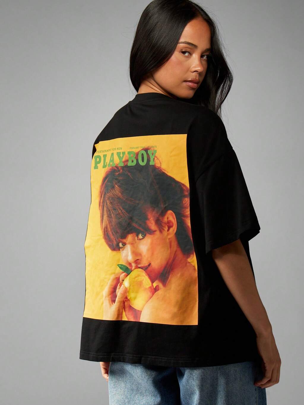 Missguided x Playboy Camiseta preta grande com estampa de capa de revista nas costas