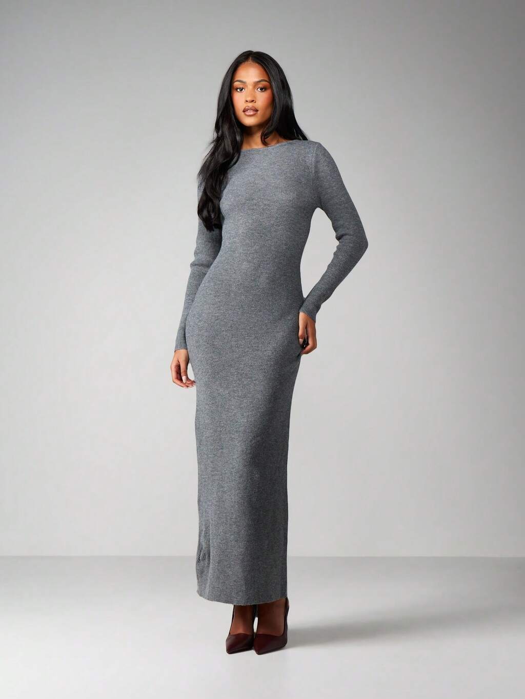 MISSGUIDED Vestido longo canelado de manga comprida