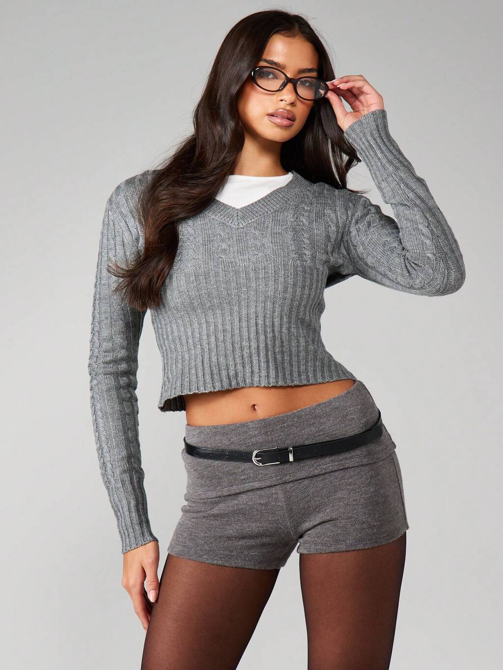 MISSGUIDED Blusa de manga comprida com decote em V e malha trançada